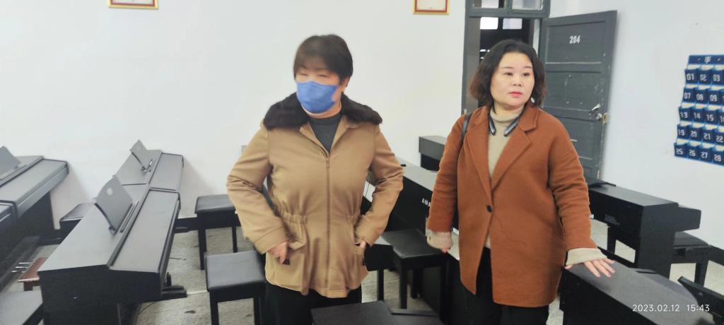 首先,检查了琴房和音乐厅,通过检查发现琴房各种设施基本完好,人员进出方便,但存在一定的安全隐患,如琴房门窗老化,一楼无防护网,有物品失窃现象;音乐厅后台二楼杂物较多,不利于消防。教室设施良好,并且采取了多项安全措施,排练厅安全防护措施到位,但假期楼顶的漏水造成了木地板泡水不平整的问题,其他基础设施设备完善,能保证师生的安全。