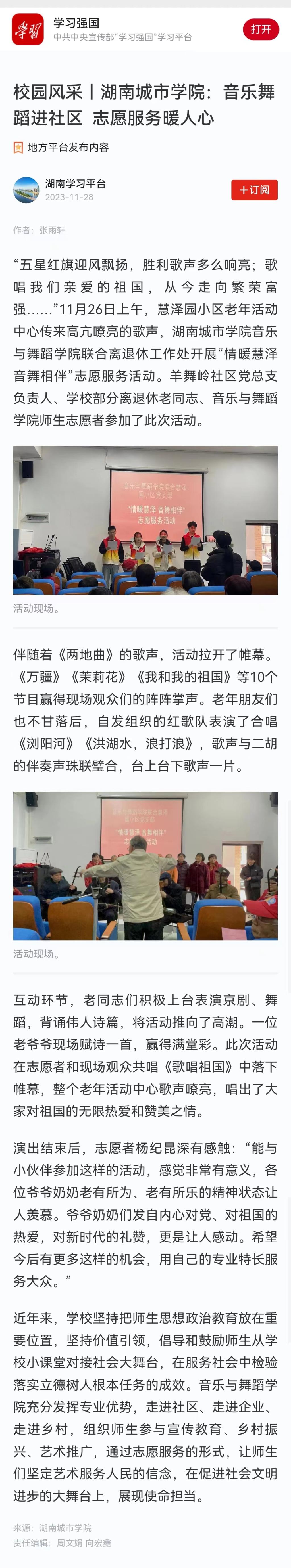学习强国 | 校园风采丨英国365上市公司:音乐舞蹈进社区 志愿服务暖人心
