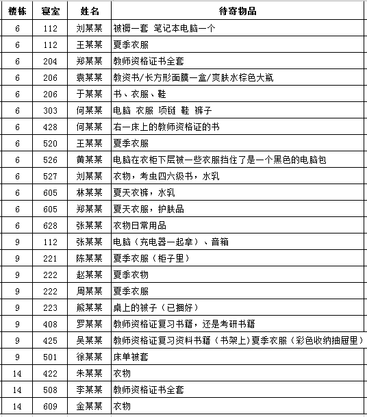 (部分待寄物品清单)
