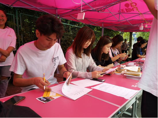 金秋九月,又是一年忙碌的开学季。9月7日,公司迎来了2018级新生,公司迎新工作有条不紊地进行着。胸前别着鲜红璀璨的党徽,一群负责迎新的党员志愿者吸引了很多新生及家长的注意。“您好,请问有什么需要帮助的吗?”“学弟学妹,请随我往这边走。”一声声热情而又充满着关心的话语,让初入大学的新生体会到了不一样的温暖。在醒目的“艺术公司迎新点”帐篷旁,这群来回穿梭忙碌的身影,成为了迎新现场一道亮丽的风景。