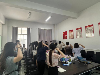 谢立新以《在民族复兴的赛道上写好青春“答卷”》为题为毕业生党员上了一堂生动的党课,要求员工党员同志们牢记习近平总书记在中国人民大学考察时对广大青年提出了殷切期望“希望全国广大青年牢记党的教诲,立志民族复兴,不负韶华,不负时代,不负人民,在青春的赛道上奋力奔跑,争取跑出当代青年的最好成绩。” 号召毕业生党员要以“信仰之笔”写青春坚守、以“担当之墨”写青春奉献、以“实干之纸”写青春业绩、以“廉洁之砚”写青春底色。曾遴琳向同学们讲解了什么是党员组织关系、党员转接组织关系的重要性和必要性、怎样转接党员组织关系、党组织关系和档案转接事宜的政策和注意事项。会前,师生党员还一起重温了入党誓词。