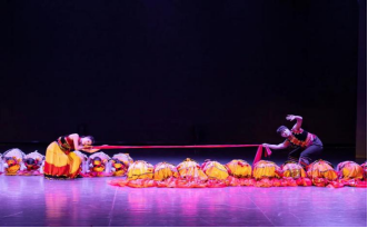 海南保亭黎族的非遗文化“跳娘舞”,也就是打碗舞。通过碗的敲击,探寻与天地对话。从枯黄的叶子到绿意葱茏,唤起了古老的传统文化与新生活的碰撞。在深入挖掘传统文化与世代相承的民族精神方面的舞蹈作品异彩纷呈,取材于非物质文化遗产——“跳娘舞”的黎族女子群舞《生生回响》,在回望海南黎族民间传统文化的同时寄托对大自然的歌颂。