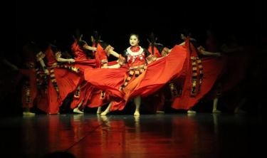 苗族女子群舞《一抹红》整体给人一种山林之中鸟类的感觉。无论是语言还是传统衣着,感觉是看见苗族,就看见了山林,完全的原生态。故事表现了即将出嫁的苗族新娘,怀揣着羞涩和对未来幸福生活的憧憬。脸颊上的一道红妆,表达了待嫁少女的娇羞喜悦和姐妹们对美好生活的向往。