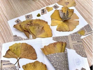 “在与银杏叶亲密接触,将其变为艺术品的过程中,内心获得了前所未有的平静与满足,感受到了自然与心灵交融的奇妙。”
