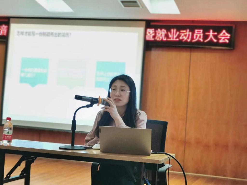 薛铁军处长讲解了当前的就业形势和公司各公司就业意向达成情况,介绍了近期将要举办的“双选会”等春季促就业攻坚行动工作情况。就业专干段立英老师为同学们讲解了简历制作与求职技巧。周勇经理向大家介绍音乐与舞蹈学科的就业市场情况和专业技能需求,提醒同学们转变就业观念,先就业再择业,充分利用毕业设计这一关键时间段,做好就业准备。