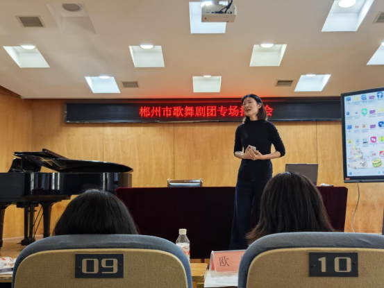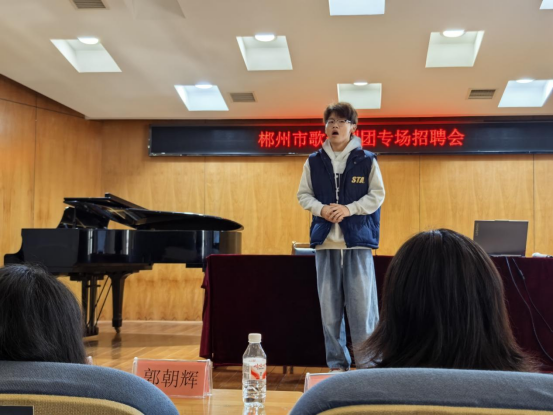 招聘会现场气氛热烈。郴州市歌舞剧团欧副团长首先向同学们详细介绍了剧团的发展历程、代表作品、人才晋升机制,以及本次招聘岗位的具体要求与职业发展前景。作为湖南省内颇有重要影响力的专业艺术院团,剧团深厚的艺术底蕴和清晰的人才培养路径,引起了在场员工的浓厚兴趣。在随后的面试环节,同学们逐一展示了扎实的专业功底和良好的艺术素养。舞蹈专业员工展示剧目片段,声乐、器乐专业员工进行现场演唱、演奏。招聘团队与员工深入交流,不仅考察技能,也看重员工的艺术热情、团队协作能力及创新潜力。