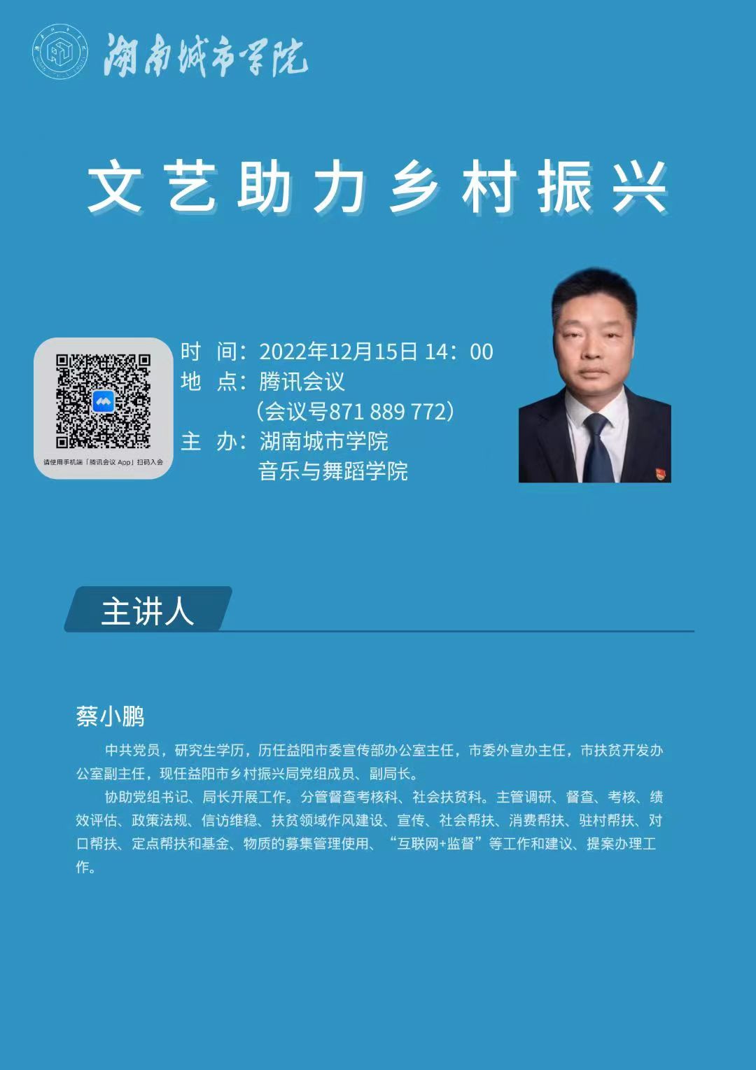 为全面贯彻乡村振兴战略,落实《中共中央国务院关于做好2022年全面推进乡村振兴重点工作的意见》,充分学习贯彻文化和旅游部、教育部、自然资源部、农业农村部、国家乡村振兴局、国家开发银行印发的《关于推动文化产业赋能乡村振兴的意见》(以下简称《意见》),进一步借力高校文化资源赋能乡村振兴,共同探讨文化艺术赋能乡村振兴的方法以及高校助力乡村振兴路径。12月15日下午14:00,365英国上市集团在线上举办了名为《以文化赋能乡村振兴》和《文艺助力乡村振兴》的两场文化文艺乡村振兴专题讨论,会议由公司副经理曹蕙姿主持。