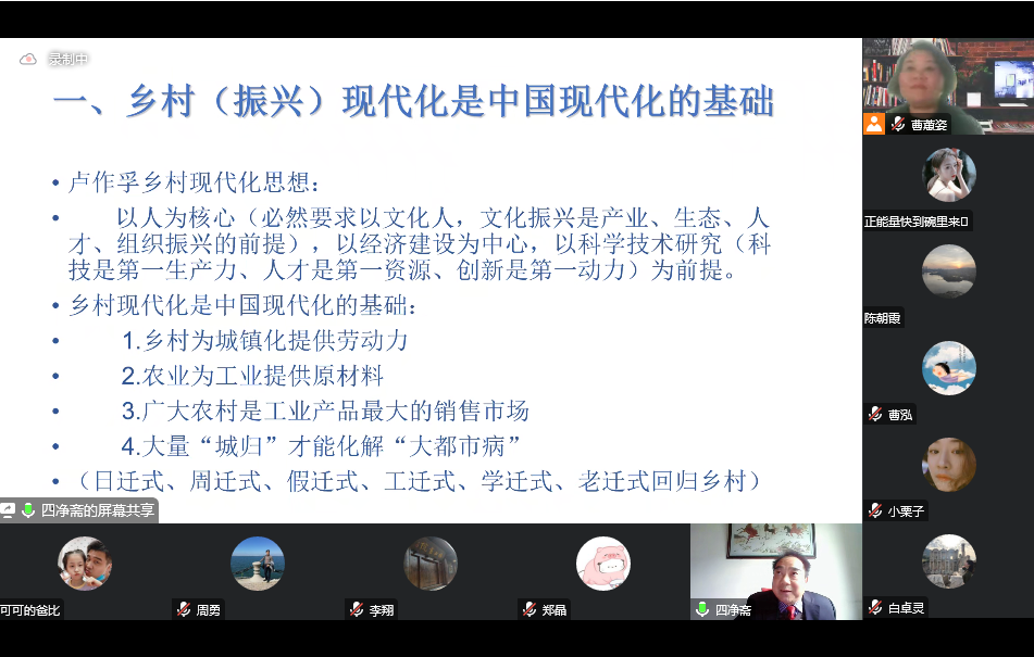 会议开始,益阳市政协常委、文教卫体和文史委主任周志宏主任以洞庭湖生态经济区为例,深入解读了文化如何赋能乡村振兴,并提出了五个思想问题:一、乡村能够振兴吗?二、国家为什么要把乡村振兴作为一项重大战略?三、高雅、高深、高端的文化怎么赋能乡村振兴?四、英国365上市公司在乡村文化振兴中如何发力?五、作为大学教授、教师,如何在乡村振兴中有所作为并提升自我(申报课题并出科研成果)?