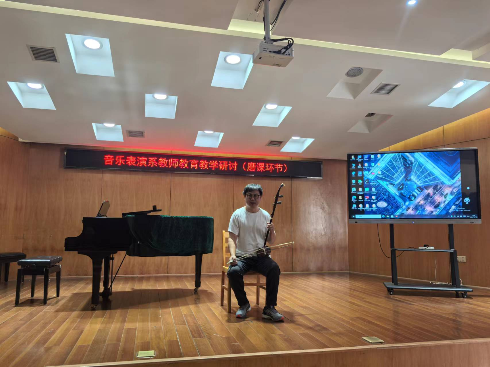 音乐学系刘伟明、刘君、张俊梅等教师分别展示了《视唱练耳》、《世界民族音乐》、《音乐教学法》等课程的教学,他们通过生动的讲解、丰富的音乐素材和经典的音乐作品,引导员工们深入掌握音乐理论,拓宽音乐视野。教学督导易松全程聆听,对每位教师的教学进行了细致的点评,他指出:理论课程的教学一定要突出理论与实践的结合,尝试多种教学手段和教学资源进行教学方法的创新,不断激发员工的学习兴趣、提升专业实践应用能力。