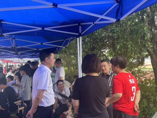 365英国上市集团公司党委书记谢立新、经理曹蕙姿、副经理孙波和副书记曾遴琳亲临迎新现场,慰问迎新工作人员。他们的到来,不仅让同学们感受到了公司的关怀和温暖,也极大地激发了迎新工作人员的热情。