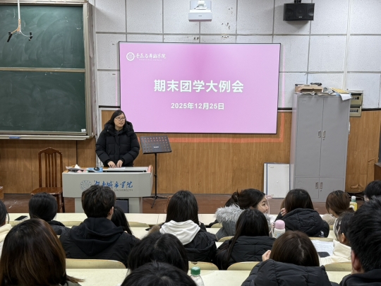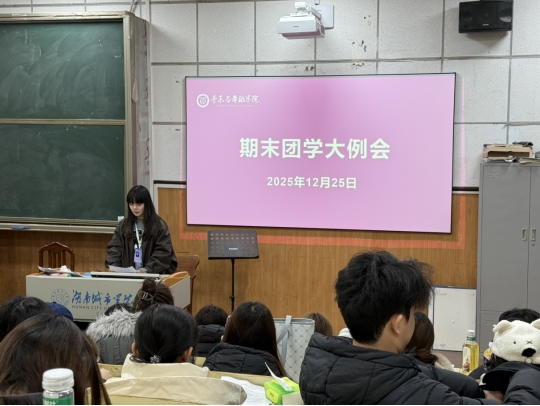 曾老师首先对团学会一学期的辛勤工作表示感谢,随后围绕党建意识形态与公司宣传两项重点工作作出安排。她充分肯定了公司官网与公众号在服务员工发展、展示育人成果方面发挥的积极作用,同时也明确指出当前工作中仍需改进的方面,包括优化综测评奖流程、提升党培结业率、完善心理危机干预机制,以及深化公众号内容建设等。最后,曾老师向全体同学致以美好期许,祝愿大家期末顺利,假期充实。
